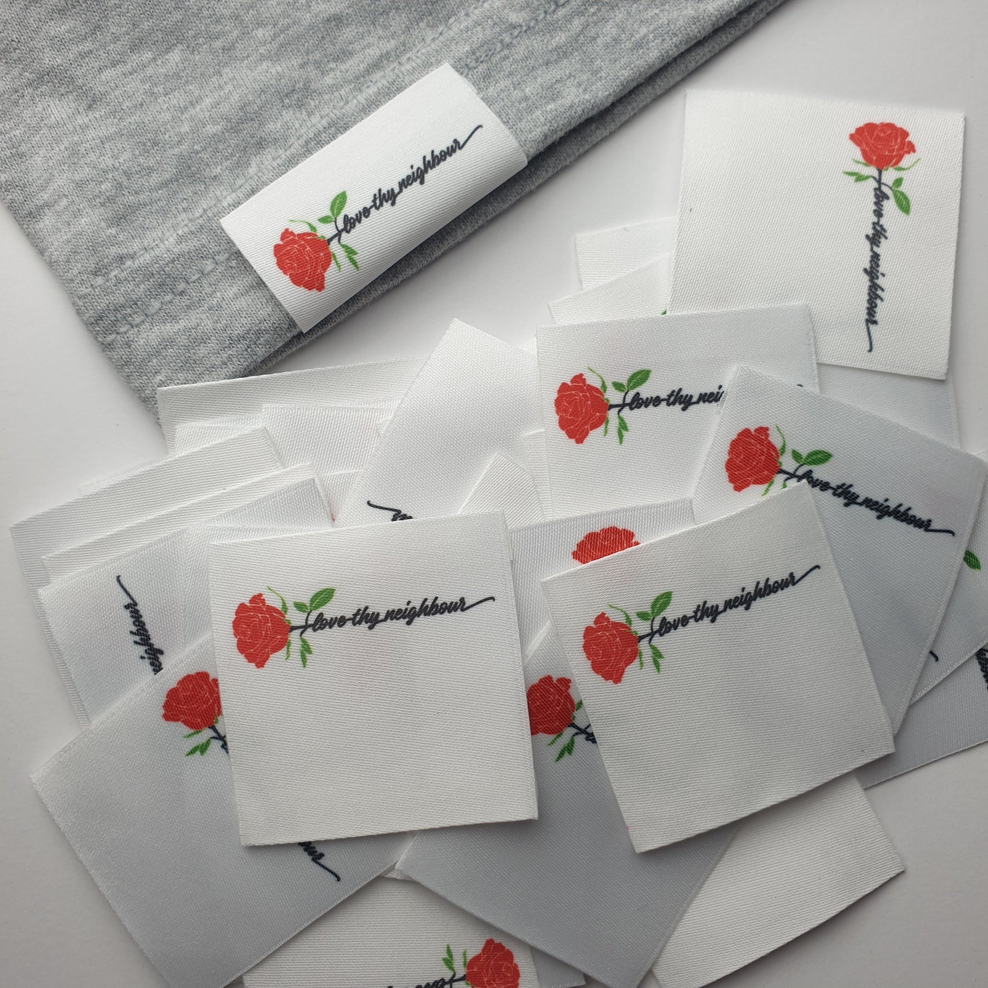 Custom printed labels with your information. These can be logo labels or combined labels with brand/logo plus sizes.